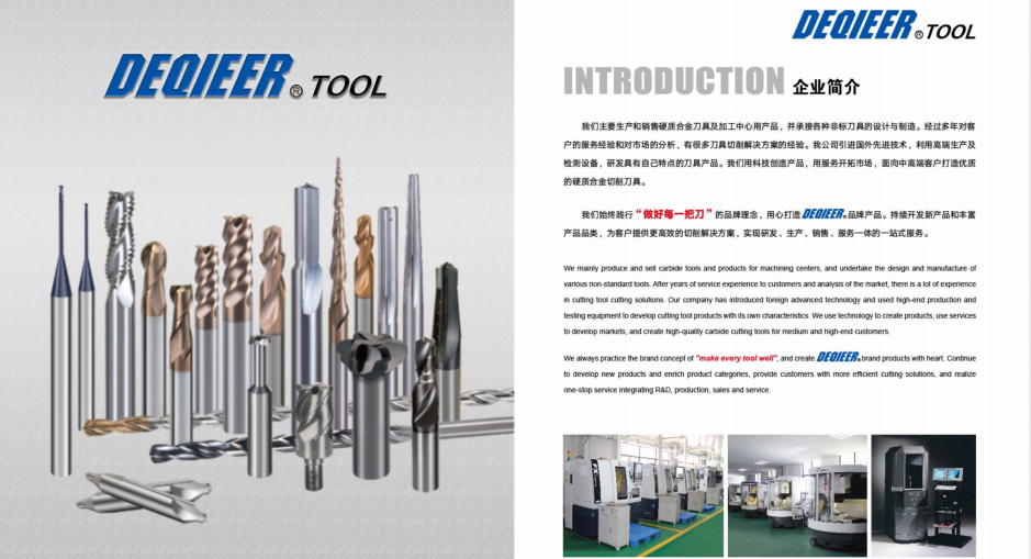 我們公司通過多年刀具使用方面的經驗,和國內外著名品牌達成了良好的合作關系,并注冊DEQIEER品牌(德切爾刀柄&銑刀) 日本YAMAWA絲攻。開拓中國市場為客戶提供具有前瞻性的刀具加工解決方案,幫助客戶提高加工效率,有效降低加工成本,提高利潤,并提升客戶的競爭力。